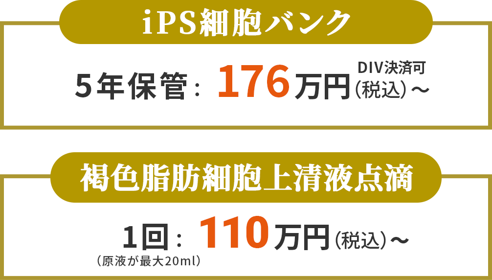 ご自身のiPS細胞から褐色脂肪細胞を作製し、その際得られた培養上清液を投与することができます。